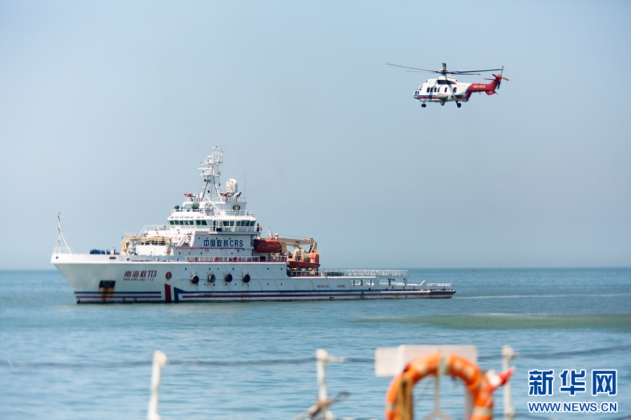 此次演练海、陆、空联动。图为应急演练现场。新华网发(广东海事局供图)