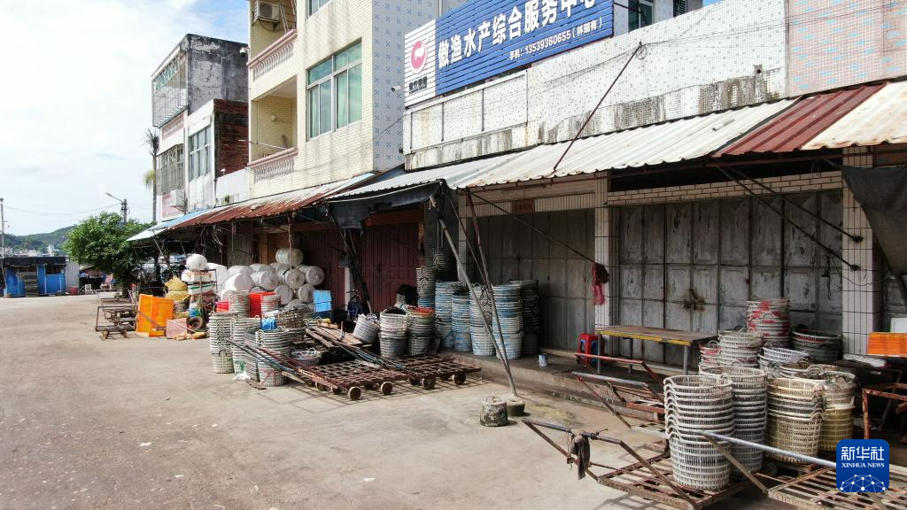 广东省潮州市饶平县三百门渔港码头的商户关门歇业(7月27日摄)。