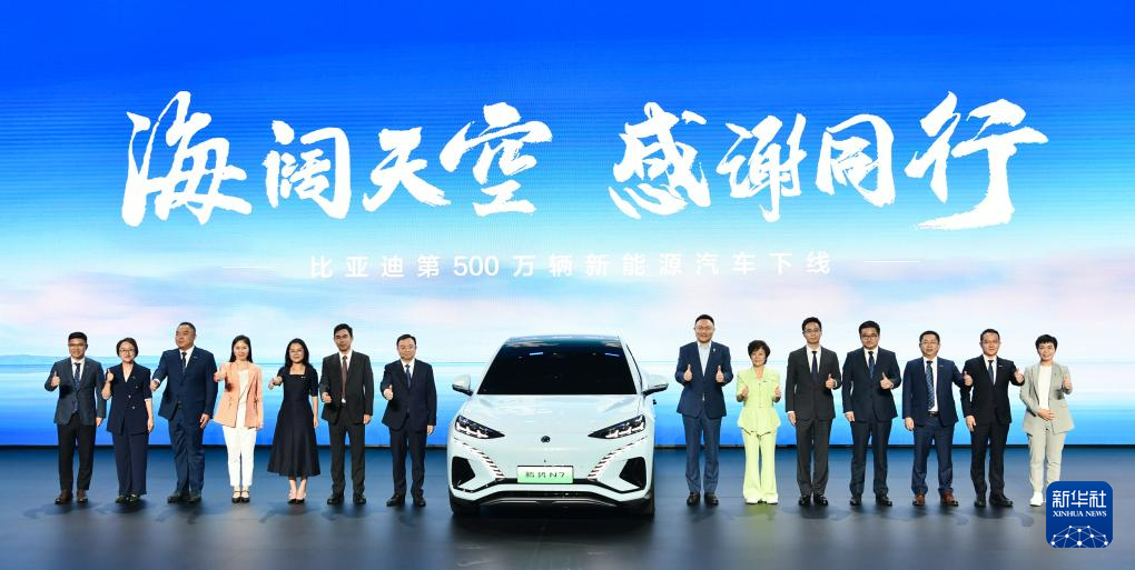 8月9日,嘉宾共同见证比亚迪第500万辆新能源汽车下线。