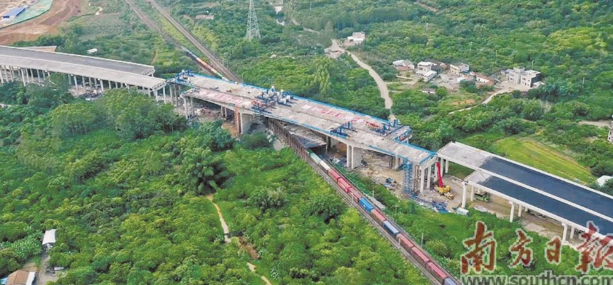 惠龙高速北起于路滩立交,南止于长湖立交,线路全长60.9千米,为双向六车道高速公路,设计速度120千米/小时,是广东省、粤港澳大湾区“十四五”重点建设项目,也是打通惠州市南北高速公路的关键通道。此次合龙的连续梁上跨既有京九铁路大动脉,是惠龙高速全线唯一一座上跨铁路桥梁,主跨全长100米,为全线跨径最大。(记者 刘倩 石磊 通讯员 陈浩 邹佳兴 王子豪)
