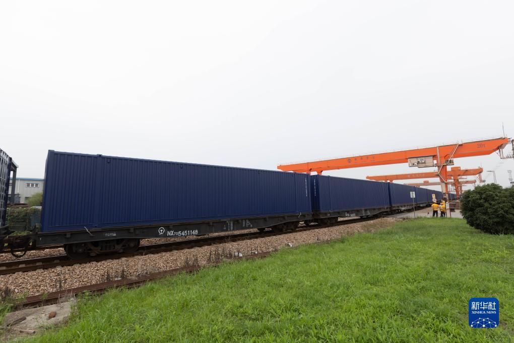 9月20日,上海发往广州的载有40个50英尺集装箱的X8721次多联快车从铁路上海货运中心闵行站出发,驶往广东东莞。新华社记者 王翔 摄
