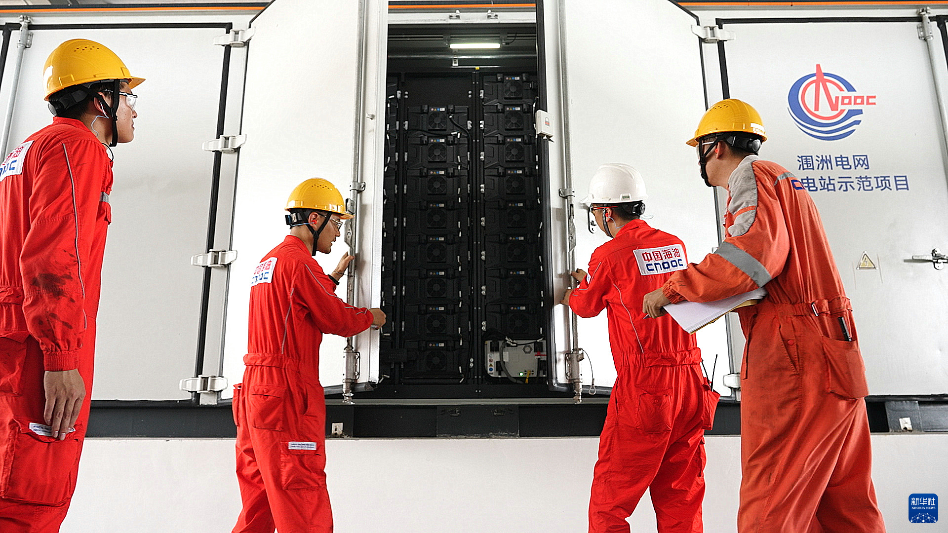 中国海油工作人员在检查储能装置设备。(中国海油湛江分公司供图)