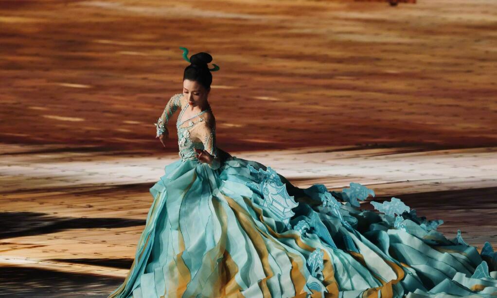 一点丹青将时光拉回千年前,地屏上一幅广阔的宋画,展开一个山水画里的中国。李倩拖着100多斤的裙子走在舞台中央,一抹青绿的亮色徐徐移动,将中国的舞蹈、绘画、音乐等艺术,将中国的传统与现代,展示在了全世界面前。(钱江晚报)