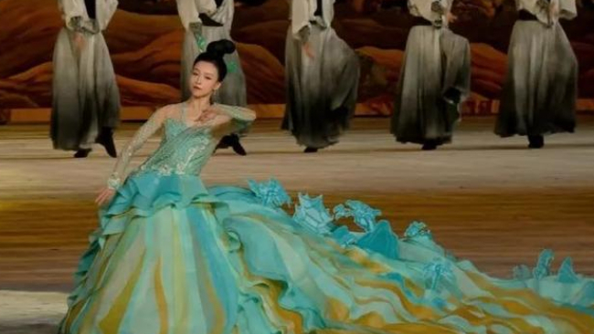 原标题:这条裙子100斤重!开幕式上她化身成一点绿,美如画