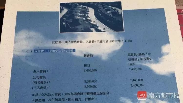 根据这位别墅住户提供的入会协议显示,800万港元入会,其中70%是入会费,30%是保证金,金卡会员获得一栋别墅的使用权,金卡会员可继承可转让,别墅不可用作商业用途。