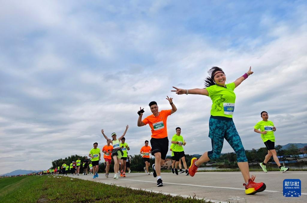 当日,一场乡村半程马拉松在广东佛山高明区举行。约5000名来自各地的跑友在稻田间奔跑,体验运动的快乐。