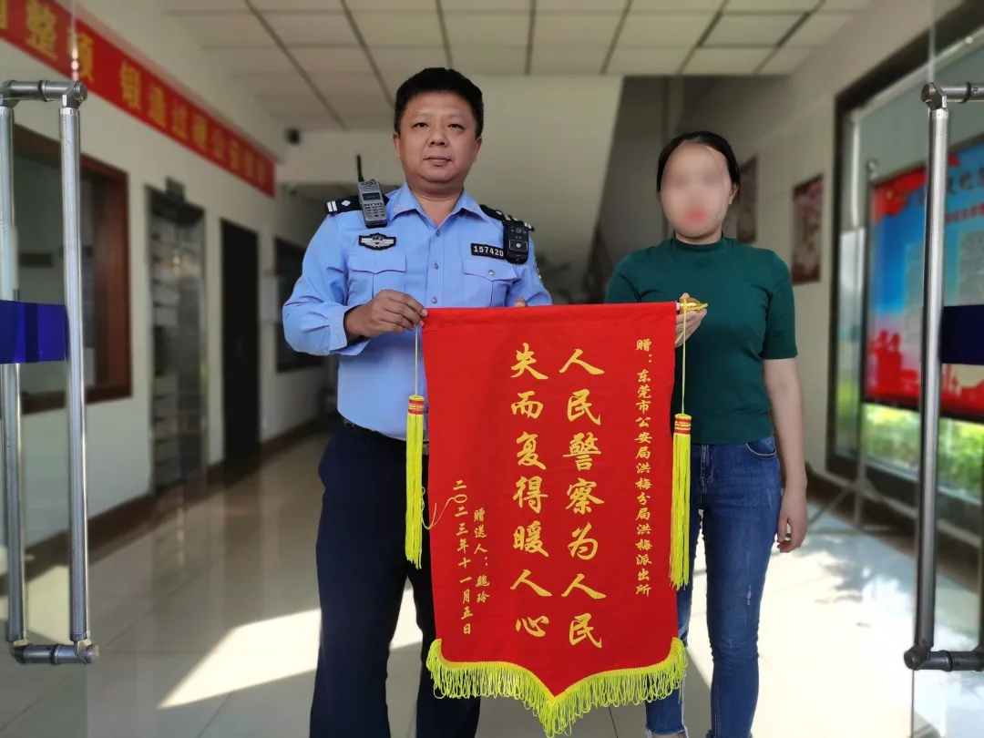几天后,小魏带着一面写着“人民警察为人民,失而复得暖人心”的锦旗送给黄茂森,对民警的帮助衷心感谢。