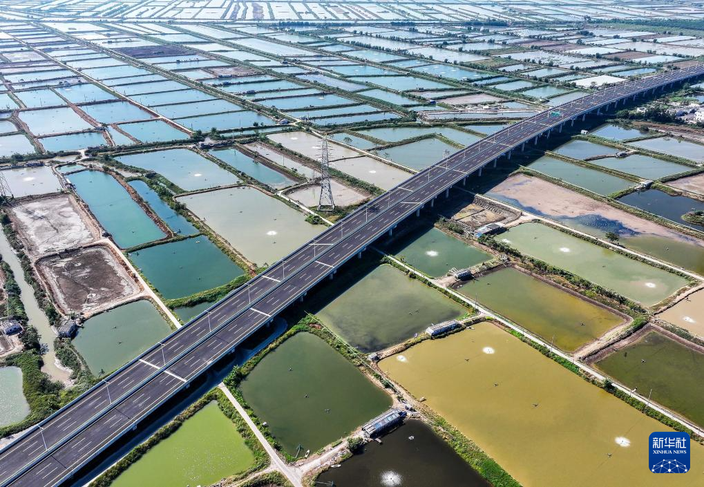 鹤港高速南水互通引桥跨越一片水产养殖区(12月8日摄,无人机照片)。