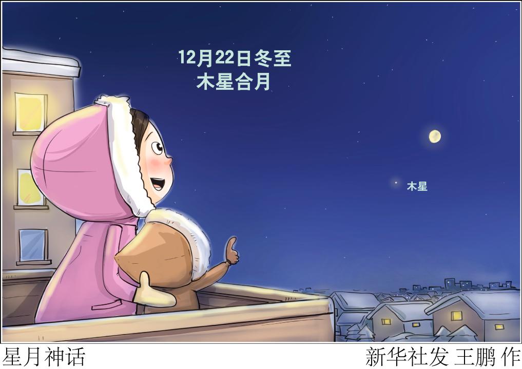 12月22日,冬至,2023年最后一场美丽的“星月童话”将在这天上演,太阳系八大行星中体积最大的木星会与一轮盈凸月相合。天文科普专家表示,我国各地公众当晚面向东南方天空裸眼就能欣赏到这幕“大个子”与“月姑娘”浪漫约会、共谱一曲“冬日恋歌”的美丽画面。新华社发 王鹏 作