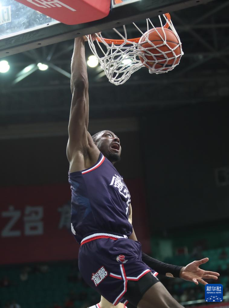 1月3日,广州龙狮队球员坎普在比赛中扣篮。新华社发(阮育军摄)