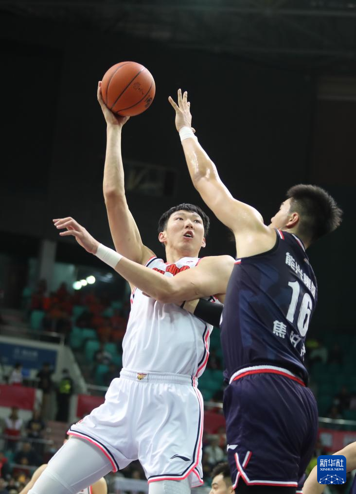 1月3日,广东华南虎队球员周琦(左)在比赛中投篮。新华社发(阮育军摄)