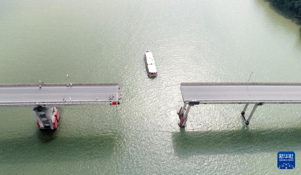 2月22日拍摄的沥心沙大桥事故现场(无人机照片)。新华社记者 卢汉欣 摄