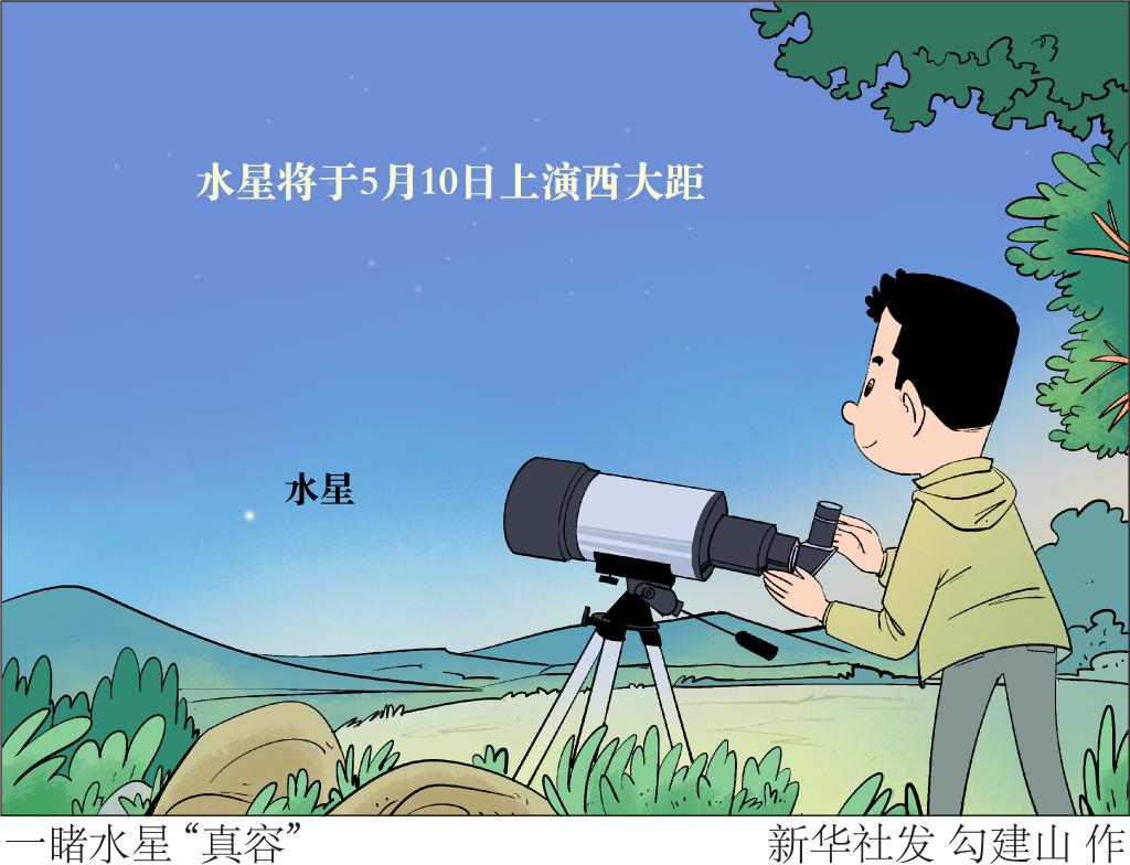 水星将于5月10日上演西大距。天文科普专家表示,本次大距期间,水星的地平高度很低,观测难度较大,但对敢于挑战的天文爱好者来说,也是一次难得的机会。新华社发 勾建山 作