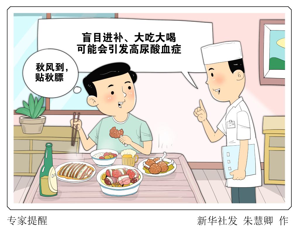 “秋风到,贴秋膘。”暑去秋来,不少地方流行“贴秋膘”的习俗,要多吃点肉,把夏天掉的“膘”补回来。但专家提醒,盲目进补、大吃大喝可能会引发高尿酸血症。新华社发 朱慧卿 作
