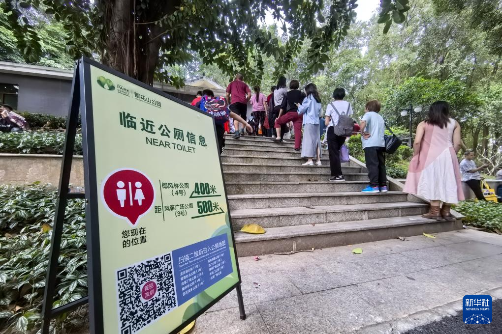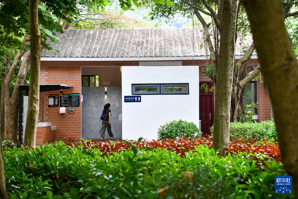 这是11月10日在深圳小南山公园拍摄的“潮汐公厕”外景。该公厕在男女厕位实现1:2的基础上,还在男女厕中间设置两个潮汐厕位,以两道可以上锁的门隔开。当一侧人数较多时,可由工作人员打开连接潮汐厕位的门,缓解厕位紧张状况。2023年,深圳市南山区开始试点“潮汐公厕”,目前已在南山区多个公园内建成6座“潮汐公厕”。新华社记者 梁旭 摄