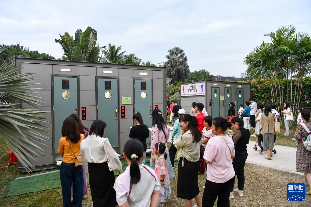 11月10日,周日,深圳莲花山公园举办勒杜鹃赏花周、音乐节等活动,人流量激增,公园里临时安置了一批智能移动公厕。新华社记者 梁旭 摄