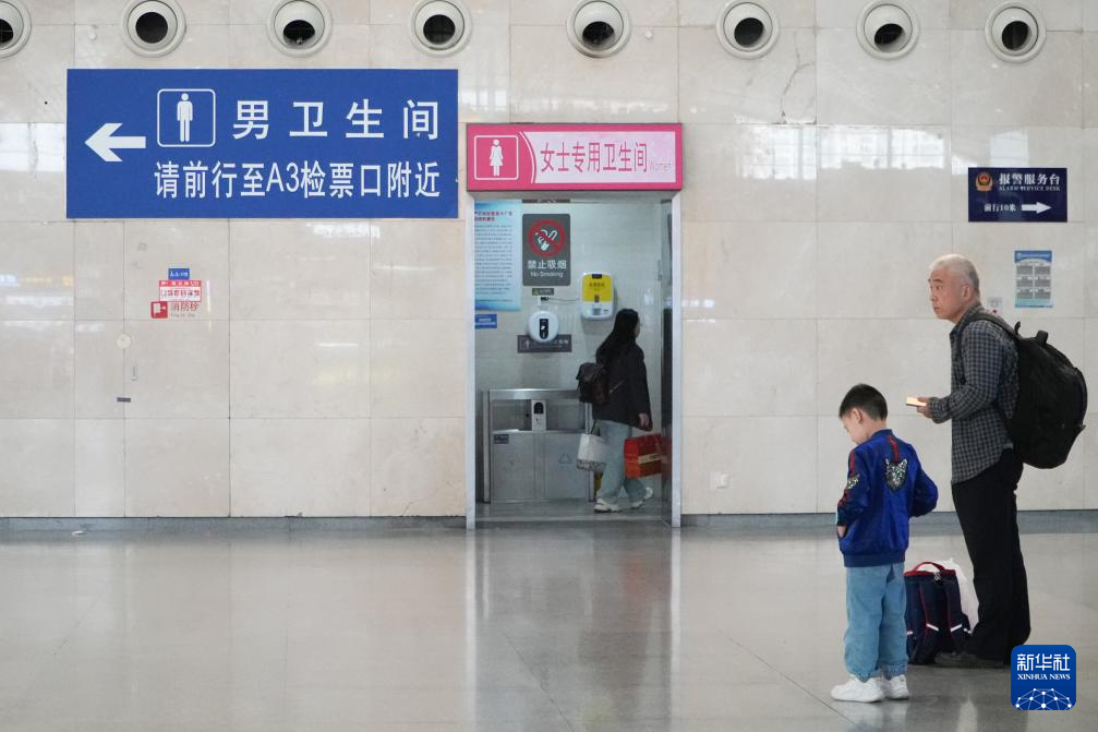 这是在长沙市长沙南站拍摄的女士专用卫生间(11月3日摄)。长沙南站候车室共有8个卫生间,其中2个为女士专用卫生间,由原先“男左女右”的传统公共卫生间改造而成,以此增加女性厕位比例,缓解女洗手间排队现象,在社交媒体上被不少女性游客发帖点赞。新华社记者 薛宇舸 摄