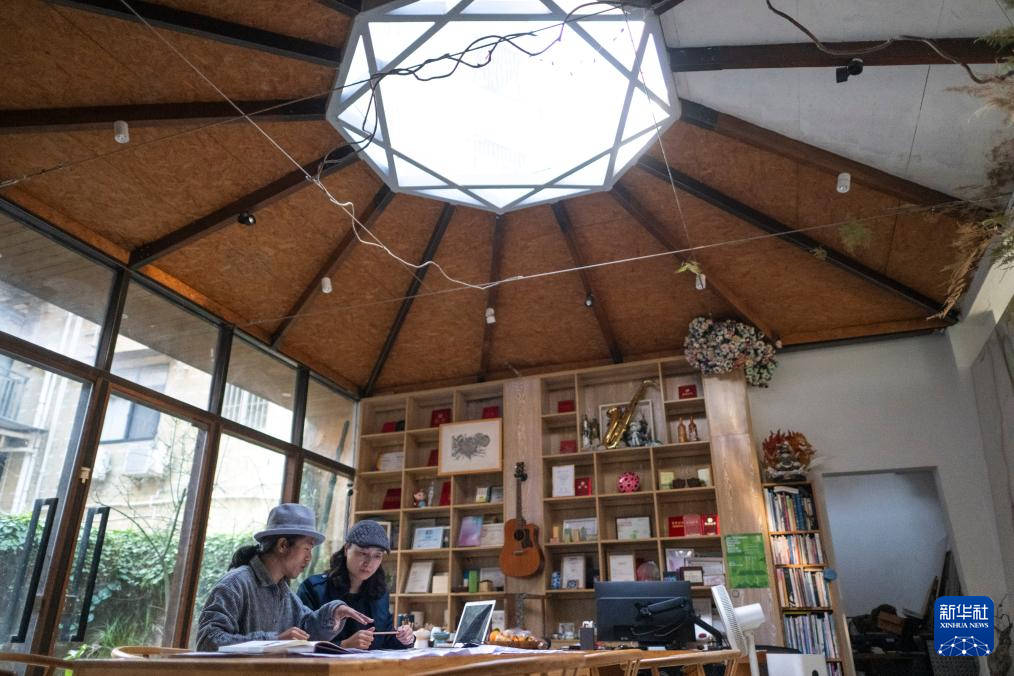 12月13日,在上围村草图营造工作室,主理人黄彬凌(左)和袁振宇(右)在修剪花园植物。新华社记者 梁旭 摄