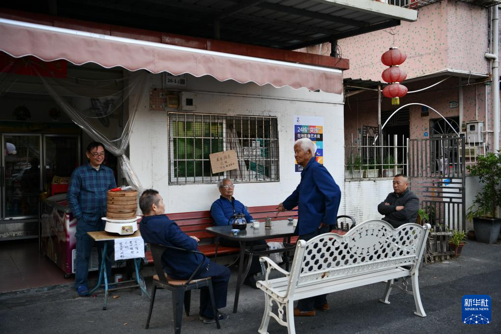 12月13日,在上围村,老人们聚在小卖部门口聊天。新华社记者 梁旭 摄