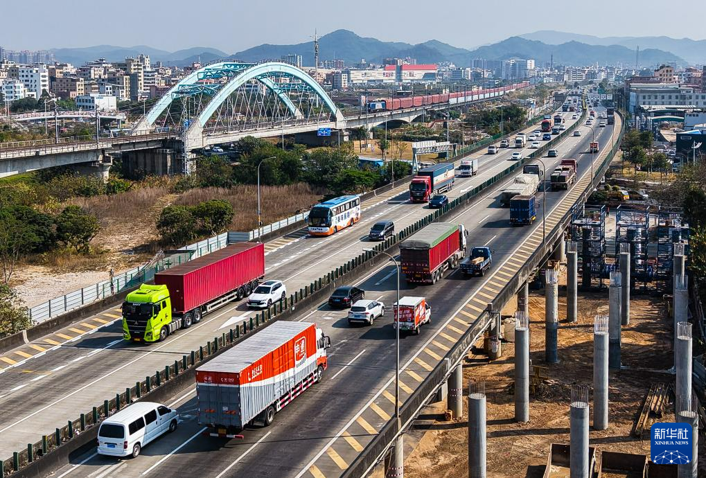 广州北二环改扩建工程现场交通流量大、施工难度高(1月9日摄)。