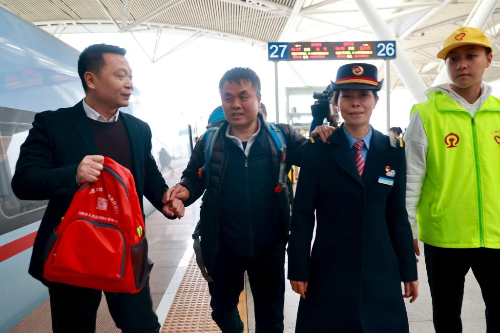 “连续5年乘坐春节返岗专列,越来越便捷了。在旅途中感受到了家的温暖。”刚下车的姚先生难掩喜悦之情。