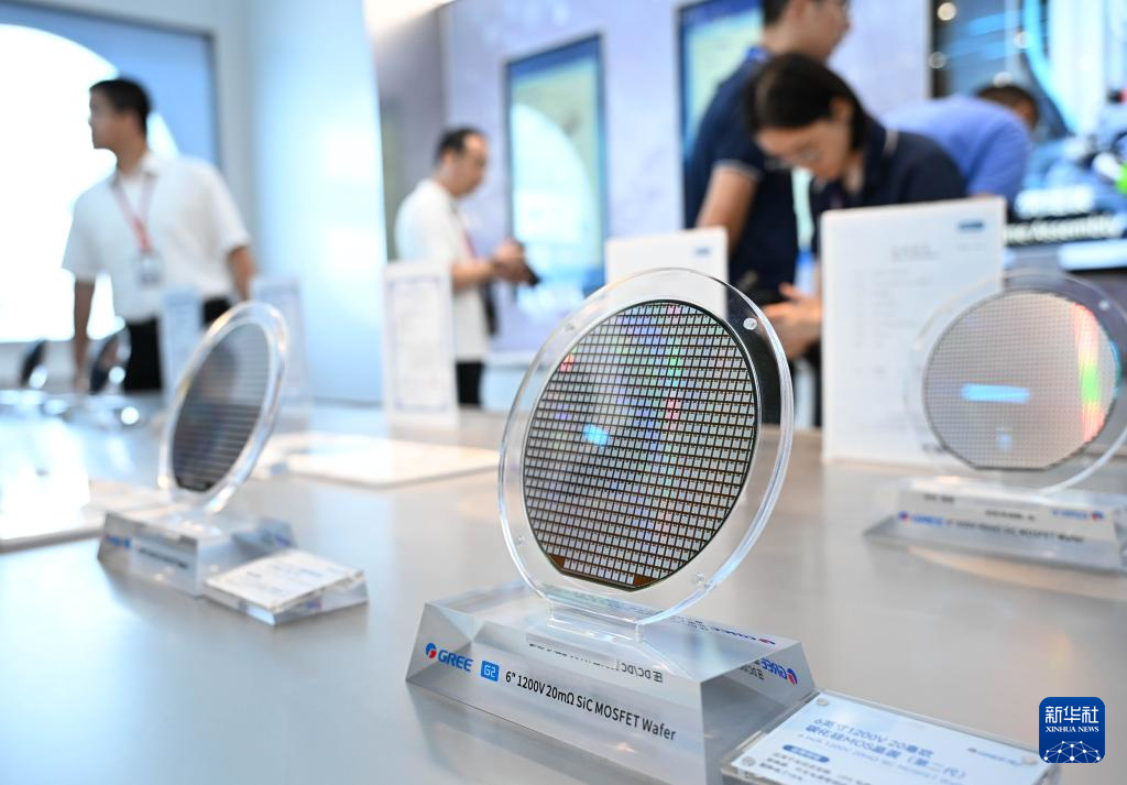 4月29日在珠海格力电子元器件有限公司拍摄的6英寸碳化硅晶圆。