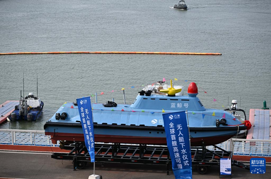 4月29日在珠海云洲智能科技股份有限公司拍摄的“蓝鲸号”高速可潜无人艇。