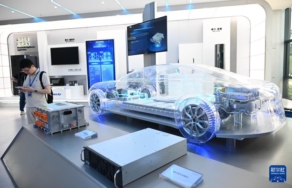 4月29日在珠海格力电子元器件有限公司拍摄的新能源汽车碳化硅充电模块、驱动电机控制器。
