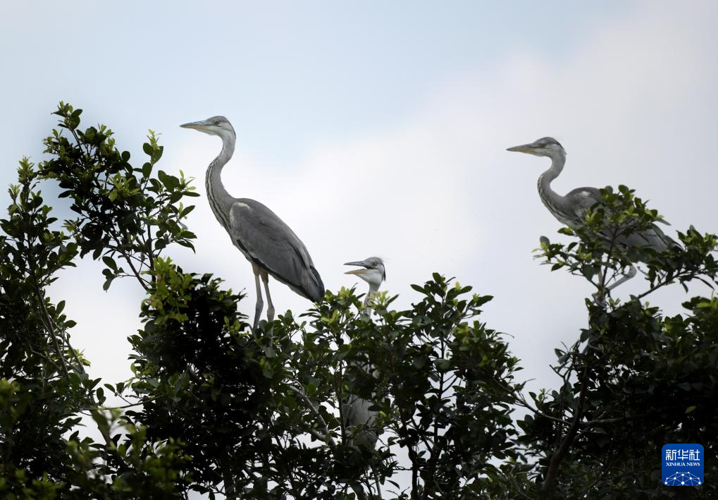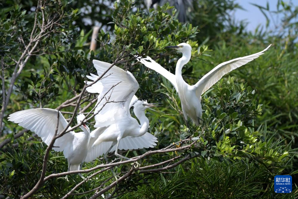 这是6月6日拍摄的在惠州西湖鸟岛上栖息的鹭鸟。新华社记者 卢汉欣 摄