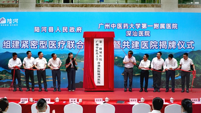 7月24日,陆河县人民政府与广州中医药大学第一附属医院深汕医院组建紧密型医疗联合体签约暨共建医院揭牌仪式在陆河县人民医院举行。陆河县将以此次签约为契机,与广州中医药大学第一附属医院深汕医院在医疗技术、人才培养、学科建设、双向转诊等方面深化合作交流,同步挂牌成立“广州中医药大学第一附属医院深汕医院陆河医院”,让陆河群众在“家门口”享受到大湾区的优质医疗资源。