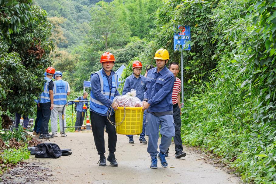 温泉镇桃莲村党总支部负责人李锡环介绍道,收到村民的信息后,组织党员干部到现场了解情况。眼看降雨持续,道路在短期内无法修复,只能肩扛背驮,绕路转运。期间,中国水电四局组织工作人员主动帮忙,让当天采摘的荔枝能及时运送出去。