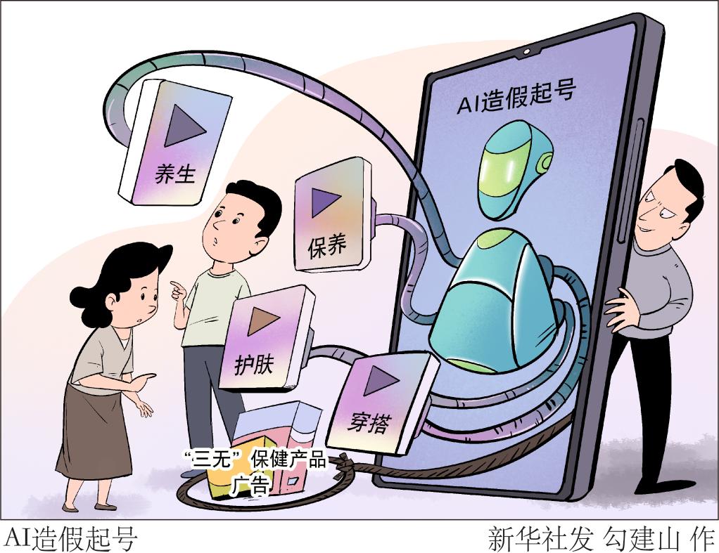 此类账号发布的穿搭、保养、护肤、养生等视频多未设置AI生成提示,不少网友误以为是真人,在评论区咨询保养方法。一些账号背后运营者则借机推送“三无”保健产品广告,还有“水军”互动造势。记者注意到,虽然部分视频存在明显技术破绽,但浏览、点赞、评论量依旧不少。新华社发 勾建山 作