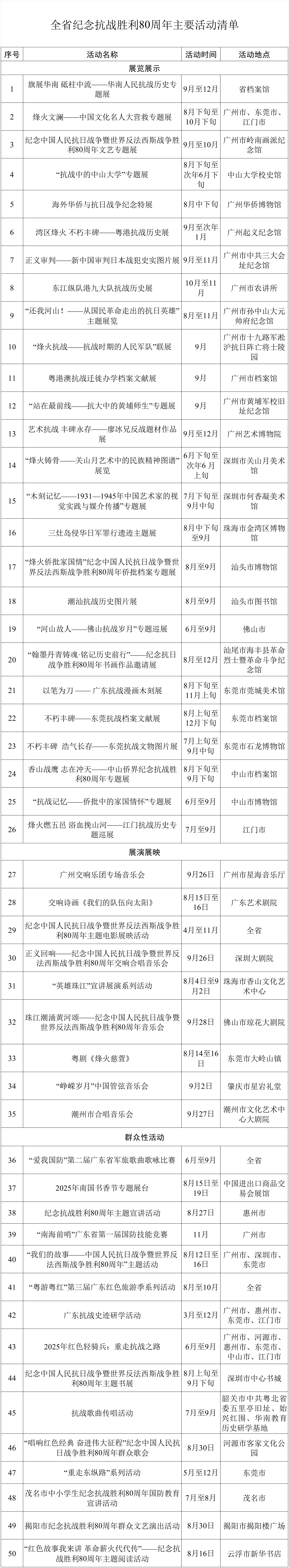广东省纪念抗战胜利80周年主要活动清单。新华网发