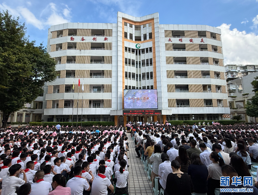 新华网广州9月1日电(关锦恒)广州市越秀区铁一小学1日举行2025学年第一学期开学典礼,并举行百名校外健康辅导员聘任和“家训一条路”落成仪式。