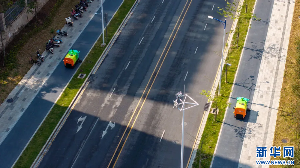 环卫机器人在坪山街头工作。新华网发(深圳市坪山区委宣传部供图)