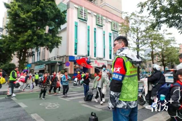 禅城区飞鸿联盟的警家校护畅队守护上、放学交通安全。佛山市委政法委供图