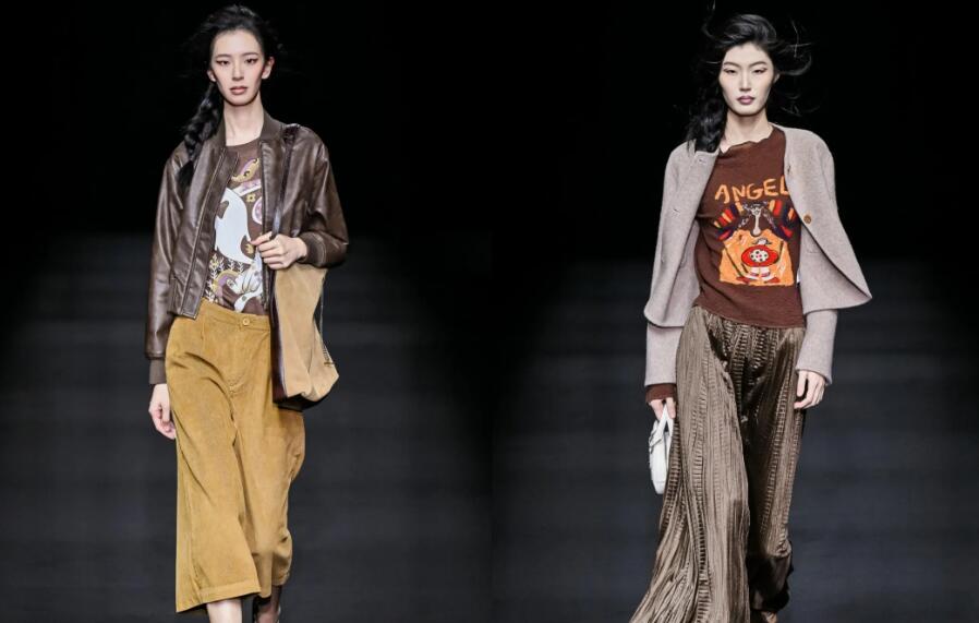 《石磨时光》主打重度洗水褪色唤醒岁月痕迹,手工割烂毛边刻录磨损温度,毛织针织碰撞叠加肌理层次——以粗粝怀旧美学诠释“衣物是愈旧愈显灵魂的生命体”。《喷绘未来》强调数码喷绘荧光×手绘涂鸦虚实交织,水洗做旧×手工刷色碰撞新旧张力,重组设计定制未来金属叙事——以“未完成态”重新定义可持续美学。