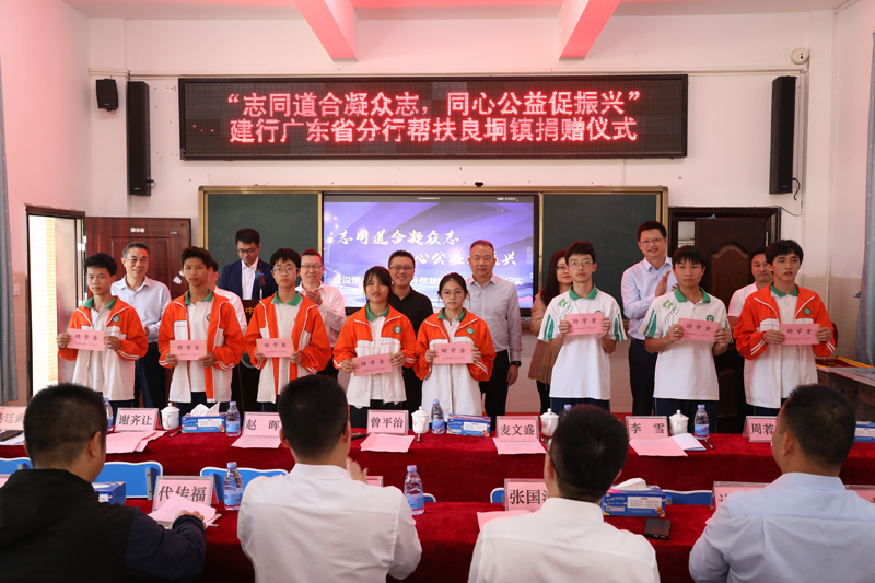 良垌镇中心学校校长作为受赠方代表发言,对建行广东省分行的爱心善举表示诚挚谢意,并承诺将管好、用好帮扶资金,切实发挥功效。受助学生代表上台分享感恩心声,表达了努力学习回馈社会的决心。