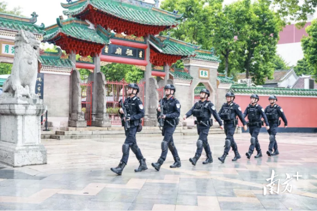 佛山市公安局特警日常在祖庙周边巡逻护航。佛山市委政法委供图