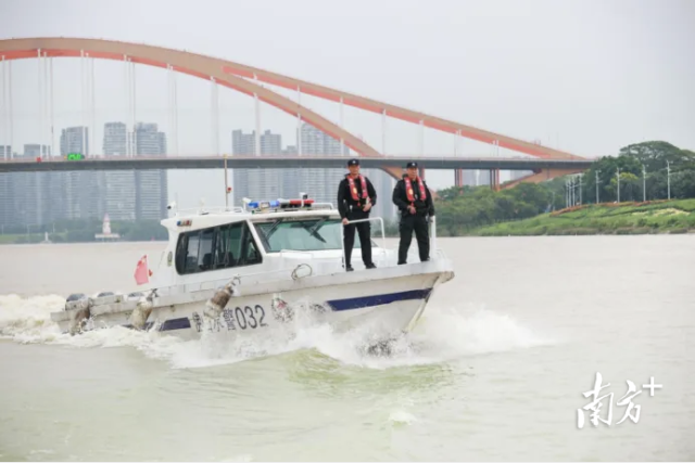 佛山市公安局水警在东平河巡逻护航。佛山市委政法委供图