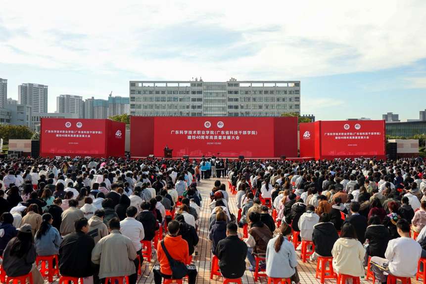 11月28日,广东科学技术职业学院(广东省科技干部学院)以“四秩华章 科创致远”为主题,在珠海校区中心广场举行建校40周年高质量发展大会,回顾学校40年来筚路蓝缕、砥砺前行的奋斗历程,擘画未来高质量发展蓝图。