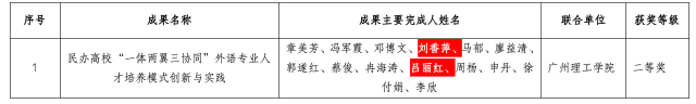 另外,该校与兄弟院校联合申报的成果也获得了二等奖1项。