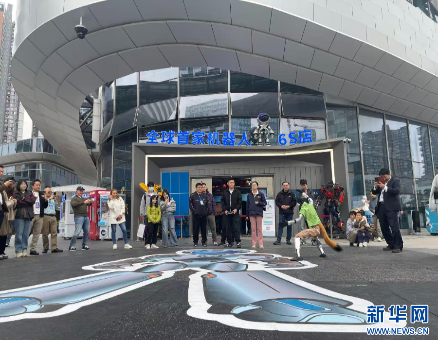 2025年12月26日,深圳龙岗,参观者在机器人6S店前看机器人表演。新华网发(俞欢 摄)