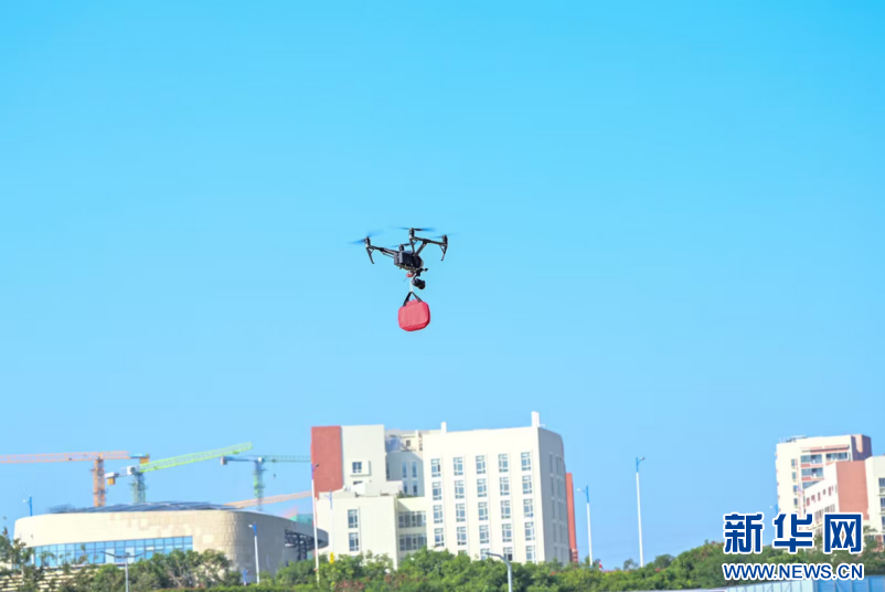 2025年12月28日,在深圳龙岗举行的2025机器人技能大赛现场,无人机在运送模拟医疗救援包。新华网发(大赛组委会供图)