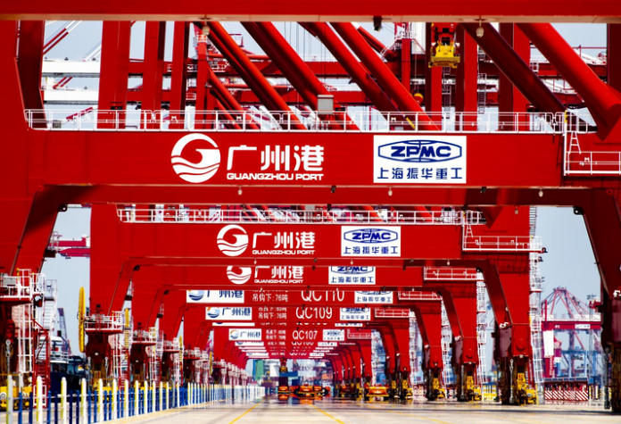 广州港码头作业场景。