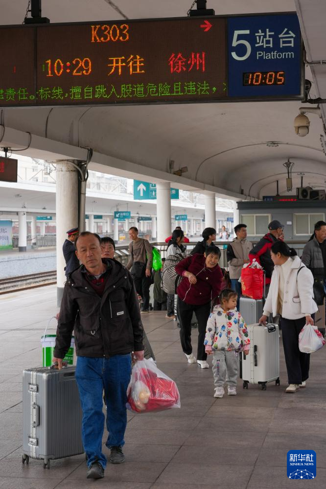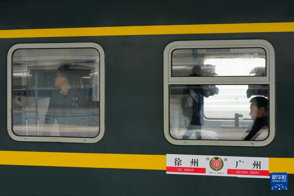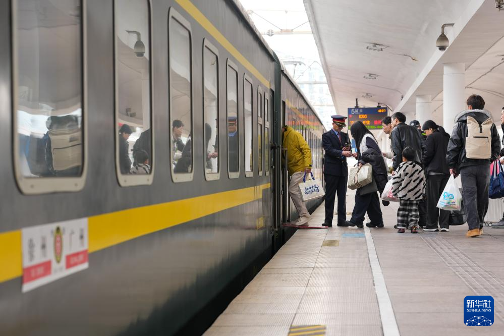 1月25日,在广州火车站,旅客准备登上K303次列车。