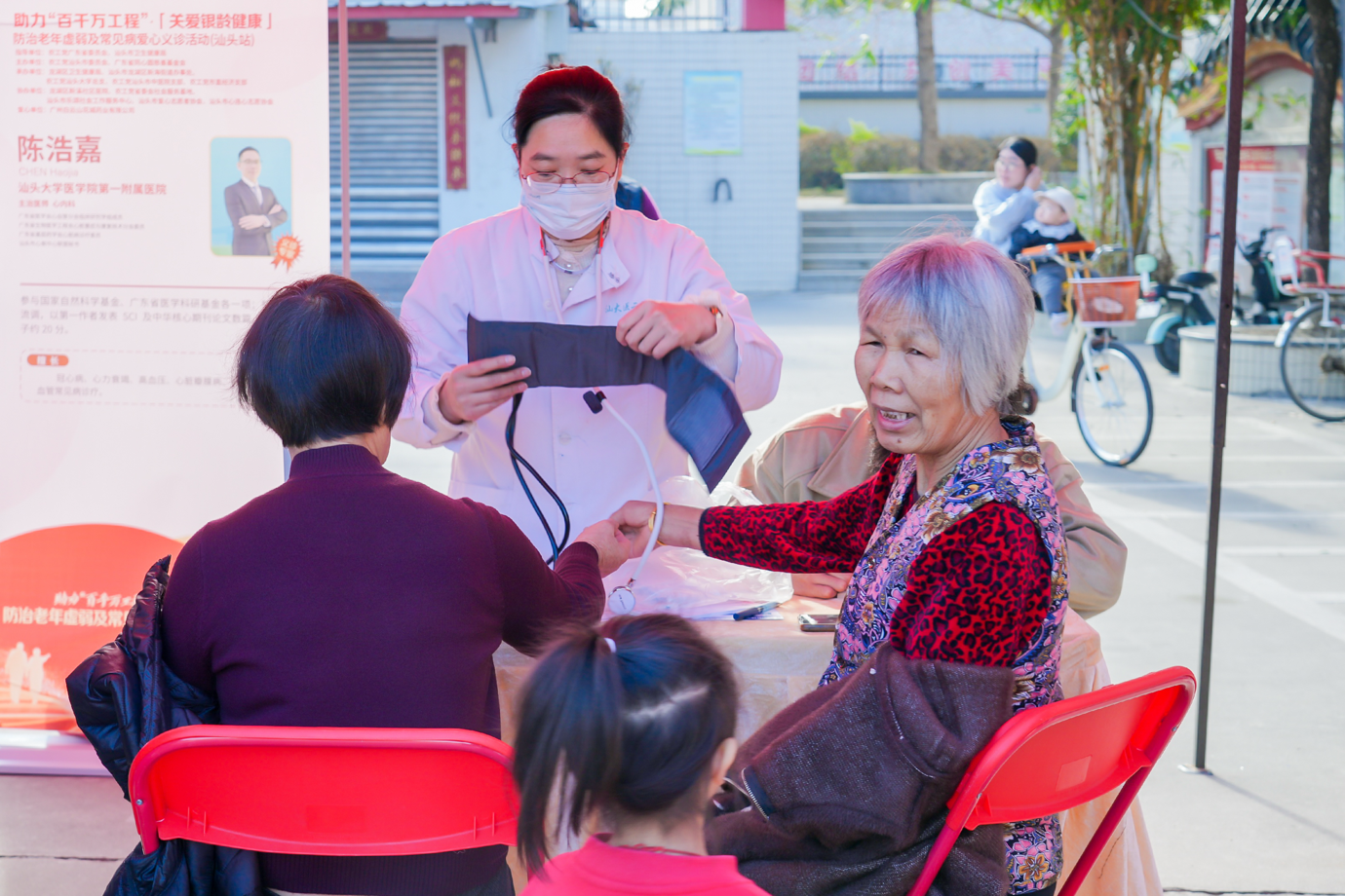 近日,助力“百千万工程”关爱银龄健康,防治老年虚弱及常见病爱心义诊好的(汕头站)汕头市龙湖区新海街道东村居会广场举行。