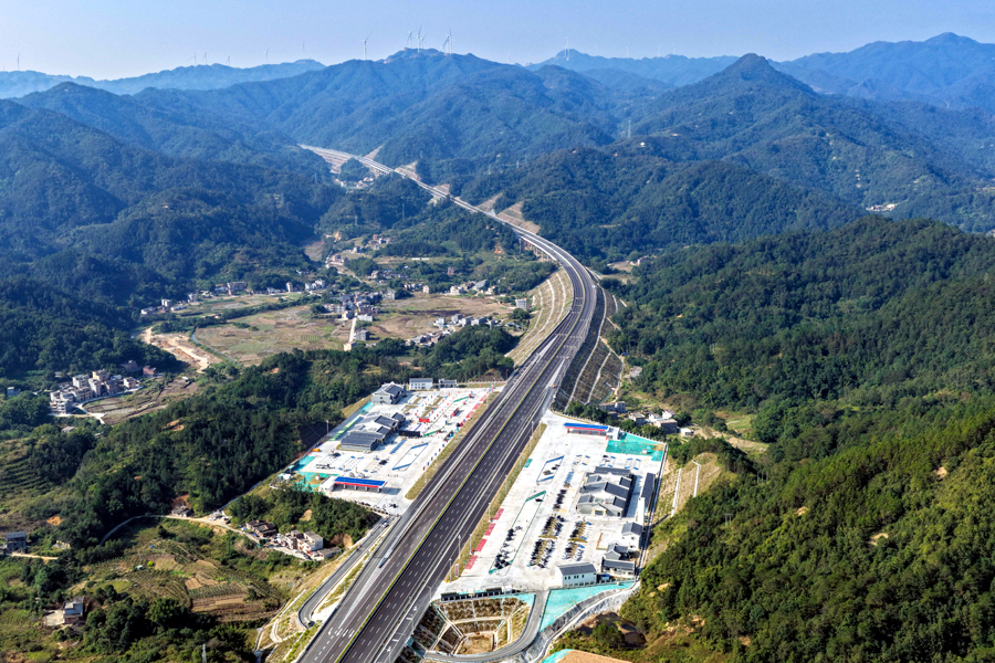 2025年12月28日,广东阳春至信宜(粤桂界)高速公路通车。这是广东阳春市拍摄的阳信高速阳春西服务区(无人机照片)。新华社记者 邓华 摄