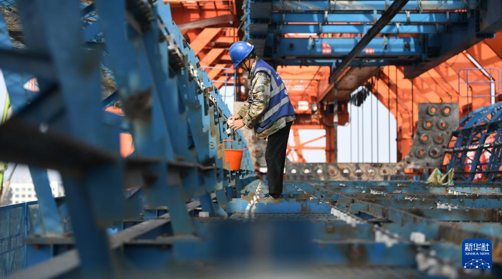 1月28日,中铁十一局承建的深江铁路跨沿江高速特大桥移动模架现浇简支梁施工任务过半,建设有序推进。