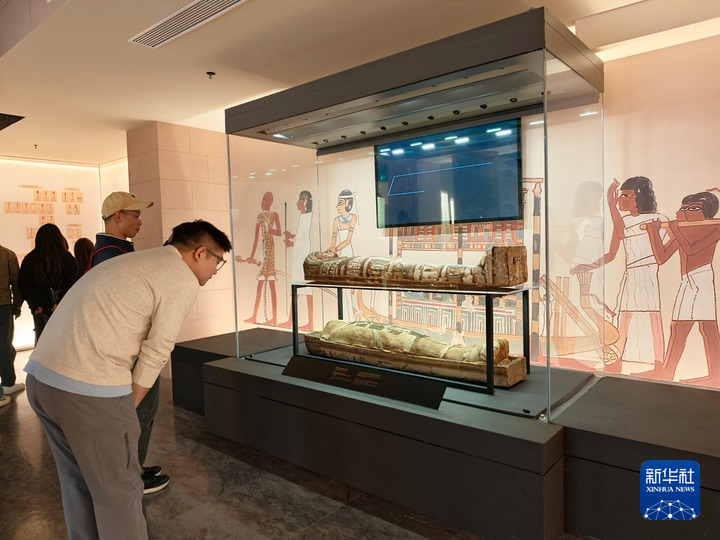 2月5日,观众参观“尼罗河的赠礼——古埃及文物与数字艺术体验展”。新华社记者 邓瑞璇 摄